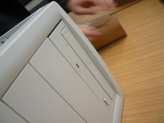 筐体前面カバーを取り外す際は, このレバー (?) を引き上げます. はめる時はちょっと強引にガシッと. |