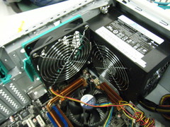 背面ファンを筐体から取り外します. ネジは使わずに脱着可能です. |