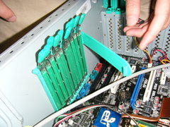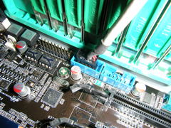 前面パネルのパワーボタン, リセットボタン, IDE ランプ, パワーランプ, スピーカーにつながるケーブルを取り外します. 白い部品をなくさないように. |