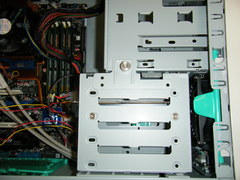 ハードディスクがセットされているブロック状の部分を取り外します. ネジを外せばブロック状の部分は取り外せます. |